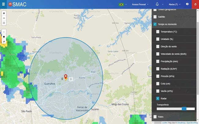 O sistema monitora e alerta em tempo real tempestades, ventania, granizo e raios em qualquer ponto do Brasil.